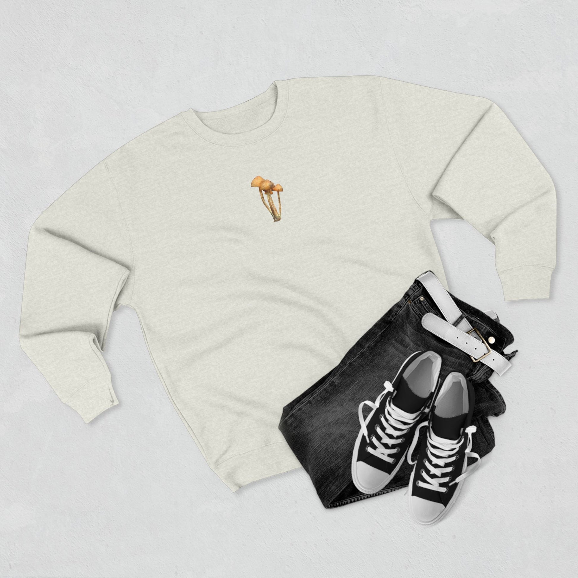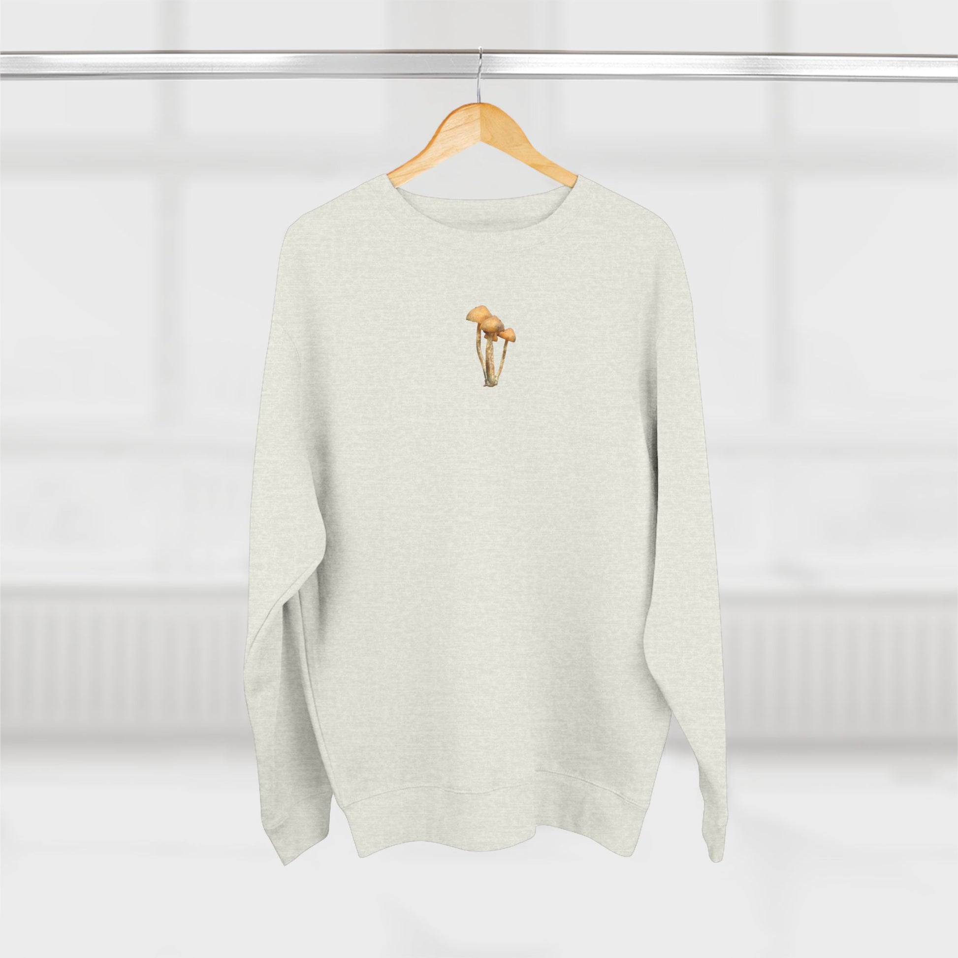 This midweight crewneck brings the hush of a morning in the woods into everyday wear. Soft fleece inside and a heathered oatmeal hue make it feel like a familiar layer: warm but breathable, worn during slow coffee, fogged road trips, or quiet walks through mossy trails. A small, photograph-accurate Zapotecorum cluster sits quietly on the chest like a field note—understated, earthy, and meant for those who notice details in nature. The relaxed, regular fit layers easily under a jacket or stands alone as a comforting piece that ages gracefully with the rhythms of outdoor life.